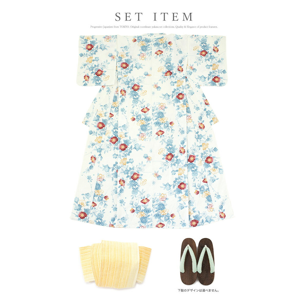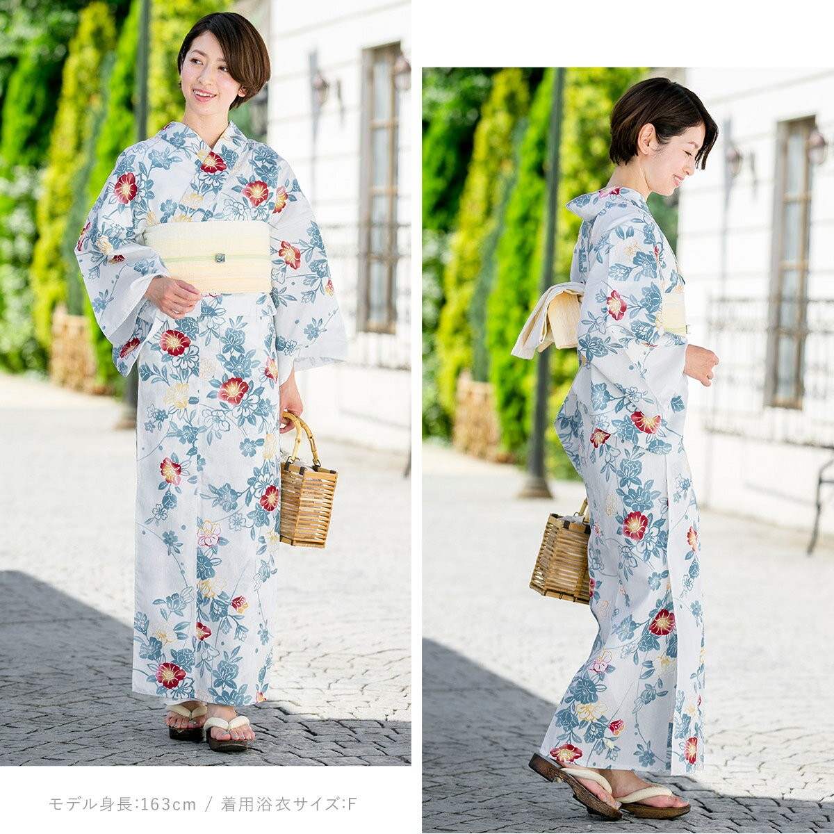 estimated delivery.■浴衣(適応身長:身丈の5cm前後)(素材)表地:綿100% 裏地:なし身丈袖丈裄丈Sサイズ約155cm約47cm約65cmフリーサイズ約165cm約49cm約68cm■帯(素材)表地:綿85% 麻15% 裏地:綿100%幅長さサイズ約17cm約396cm■下駄(適応サイズ:23.0〜24.5cm)(素材)鼻緒:ポリエステル 台:桐幅長さ高さサイズ約8cm約24.2cm約3.5cmこちらの商品は、浴衣・帯・下駄の3点セットです。