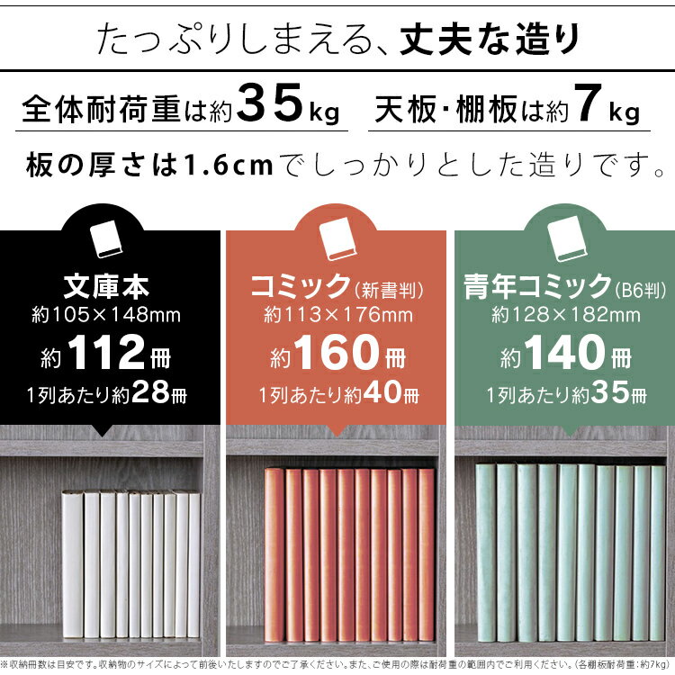 ◆スッキリしまえる、大容量の収納力文庫本なら約112冊、コミック(新書版)なら約160冊青年コミック(B6版)なら約140冊収納できます。
