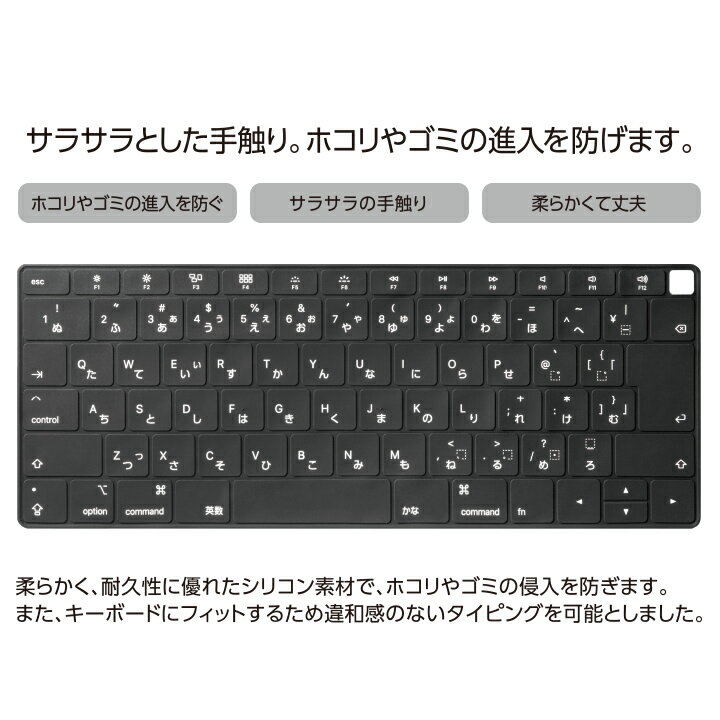ホコリやゴミの侵入を防ぐ キーボードの上にかぶせて使用することで、ホコリやゴミの侵入を防ぎます。